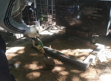На данном месте захоронения нам предстояло провести следующие работы: поставить на место покосившийся памятник и положить на территорию участка гранитную брусчатку.
