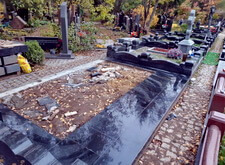 Далее мы установили мраморный крест, который отдельно приобретал сам клиент, а также вернули на место гранитное ограждение, предварительно его подрезав.