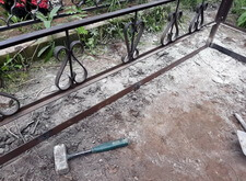В ходе работы над данным заказом нам предстояло: переустановить покосившийся широкий памятник из чёрного гранита; покрасить обветшавшее от времени ограждение; обновить надписи на надгробье; установить прямоугольный цветник, а также выложить землю на участке гранитной брусчаткой. Приехав на место захоронения мы застали могилу в заброшенном состоянии: на всей её территории росла сорная трава, практически полностью скрывавшая памятник.